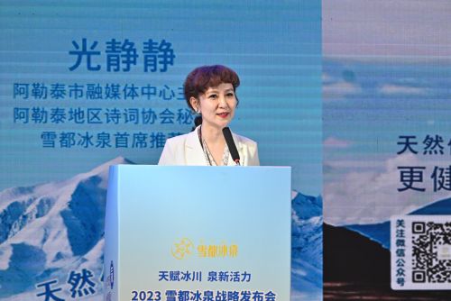 雪都冰泉首席推荐官光静静生动形象的介绍了雪都阿勒泰、新疆雪都冰川水有限公司的发展历程及雪都冰泉的低氘特性。
