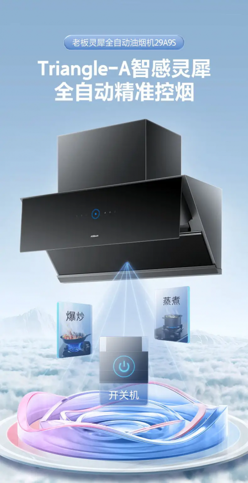 老板灵犀全自动油烟机29A9S的使用体验,堪比“无人驾驶”。以往烟机调整档位时需要手动操作,油烟大选择强档,油烟小选择中低档。但实际烹饪中,下菜、调味、翻炒都要处处留意,油烟升起往往瞬间发生,一旦调整不及时就会弥漫整个厨房,严重影响烹饪体验。