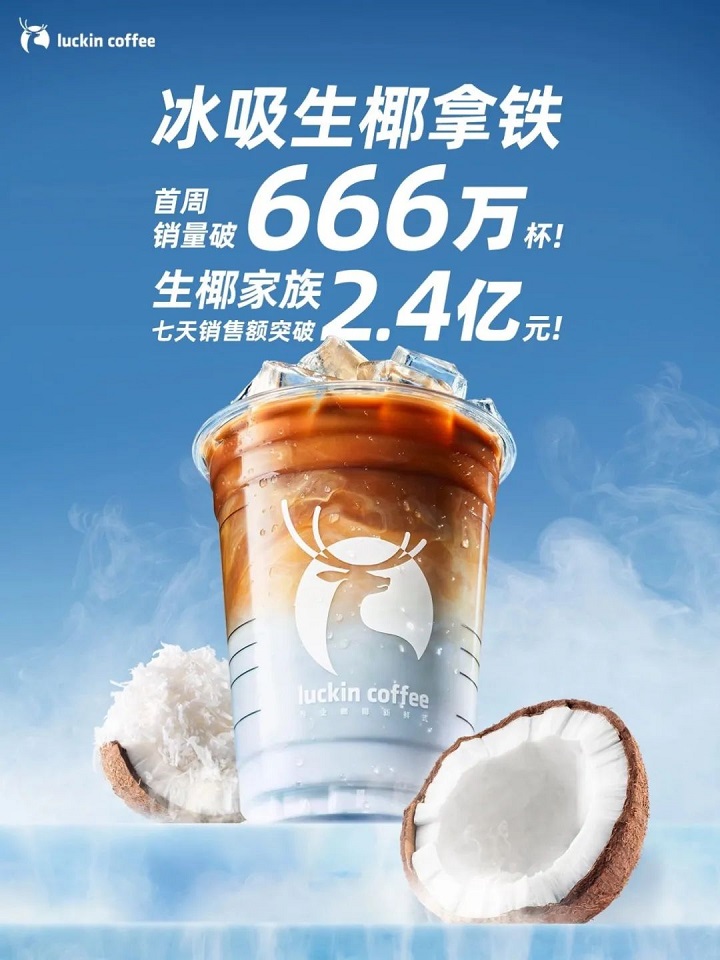 数据是最好的证明:近日,瑞幸官方宣布「生椰拿铁」上市两周年销量已突破3亿杯!最近另一款新品「冰吸生椰拿铁」,上市一周销量就突破了666万杯,打破了2022年10月由「生酪拿铁」创下的上市一周659万杯的新品销量纪录。