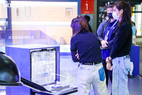 老板洗碗机在内腔中内置洗锅小三叉喷臂作为锅具强洗专区,定向强力去除各种锅的油污。另外通过增设洗锅专用支架,实现锅盘叠洗,把空间利用到极致。同时,老板洗碗机还有洗锅专属程序—锅具强洗,轻松瓦解顽固污渍,即使隔夜油污,照洗不误,油污去除率99.99%,让用户真正释放双手。为了让参展观众直观了解老板洗碗机的清洗过程,AWE现场还特设透明门板,不少人上前围观目睹洗碗机的工作流程。