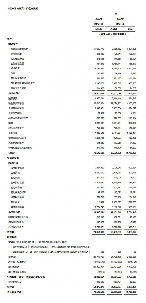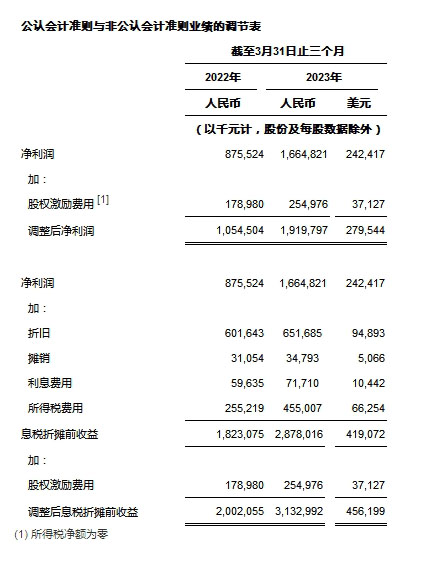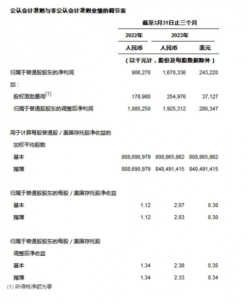 • 归属于普通股股东的调整后基本及摊薄每股美国存托股收益[5]为人民币2.38元(0.35美元)及人民币2.33元(0.34美元),较2022年同期的人民币1.34元及人民币1.34元分别增长77.6%及73.9%。