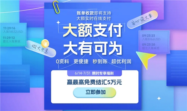 值得一提的是,6月14号至7月31号期间,PingPong福贸展开限时专享账单收款福利:最高免费提现5万额度。用户成功入账1次可得免费提现券1万额度;成功入账3次可得免费提现券3万额度;成功收取欧洲、北美买家付款且金额≥$1000,可得免费提现券1万额度。