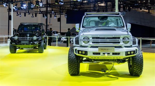 超境汽车展台上的另一重磅焦点,便是超境汽车个性化定制配件子品牌——PLAY.STH的正式亮相,越野套件、磁流变减振器、轮毂等主要产品全数登场。