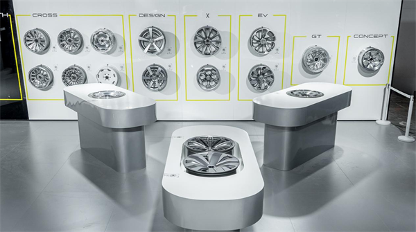 现场还展示了PLAY.STH的5个系列13款轮毂,分别为CROSS系列、X系列、GT系列、DES!GN系列、EV系列等,多款造型适配不同用车场景。这5个系列轮毂均为6061-T6 铝合金材质的锻造轮毂,结构强度高,成品轻量化。据了解,其中的CR01\CR02\CR03 款是国内首批获得 LM 认证的轮毂,PLAY.STH所有轮毂产品在上市前均会主动完成车轮冲击性能试验、车轮动态弯曲疲劳性能试验、车轮动态径向疲劳性能试验等轮毂三大安全性能试验,漆膜品控坚持更高要求的车规级标准。内部轮毂及整车设计团队沟通配合,确保产品在造型出众的同时,满足安全可靠的基本要求。