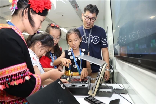 ( 少数民族学生观看并参与电脑产品的实地拆解环节 )