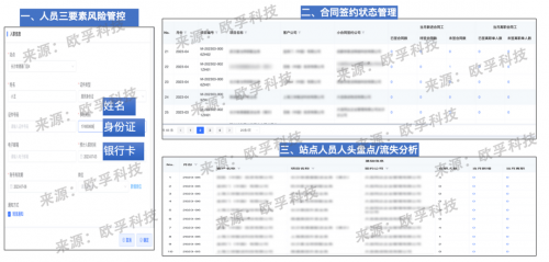 针对以上问题,传统的人员“花名册”已经无法满足如此灵活的业务需求。因此,在即配行业中,可以引入“运力花名册” 的概念,以站点为单位进行管理。在骑手的档案信息存档阶段,可以设置多样的内控规则。 例如,入职时进行身份认证(姓名-身份证-银行卡),以规避用工风险。另外,以“站点”为管理单位时,可以对全职骑手和非全骑手的员工类型进行分类盘点,并从协议签订的维度的“入”和从离职办理的维度“出”来记录相关数据。 这样的内控控制有助于跟上业务的灵活步伐,并提供更精确的人力资源管理。