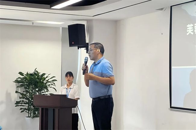 “机会均等,注重贡献,德才是举,是全亿健康一直以来的用人之道。我们相信,每位员工都是宝贵的资产,公司将竭尽所能为各位提供培训和学习机会,帮助大家不断提升自己的知识技能和专业能力,从而实现自我价值的最大化。”吴仲勇强调了企业文化对于员工融入和发展的重要性,并解释了公司价值观、使命和愿景。此外,他还介绍了公司的组织架构,包括各部门的职责和协作方式,让员工们更加了解公司的运作方式。