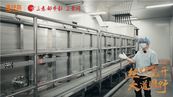 在参观的过程中,我们发现偌大车间里多条生产线上,工人的身影少之又少,问其原由,该公司采用全自动智能化的生产线,从入料、搓面、成面、煮面等7个过程仅需不到5名工人,而工人主要的工作都是监控每个流程间的衔接,几乎不会干预生产的过程,从原料到生产再到包装入库,整个过程实现完全自动化。