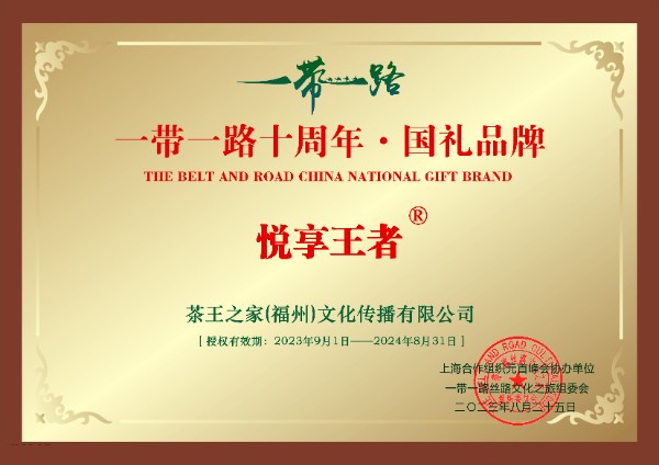 这次活动,由上海合作组织元首峰会、一带一路丝路文化之旅组委会发起,旨在从各主要行业领域中,推选出具有代表性及良好用户口碑的品牌及产品。“悦享王者”凭借其良好的理念定位、品牌形象、价值诉求以及“中国茶•世界语”的品牌情感共融,打动了所有评委,成功入选“一带一路十周年•国礼品牌”。