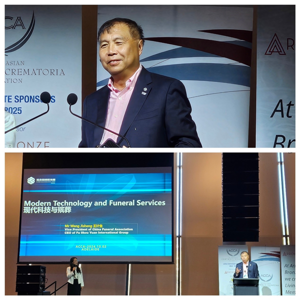 福寿园国际集团执行董事、总裁王计生受邀进行了主题为《现代科技与殡葬》的演讲。他指出全球数字化和科技创新,尤其是人工智能、大数据分析和云计算的广泛应用,推动了各行各业的数字化转型和创新。在数字技术快速发展的大背景下,殡葬行业也要积极拥抱数字变革,用现代科技做好”碳基生命“和”硅基生命“的留存,把人类生命留存的“记号”做美,把“记载”做厚,把“纪念”做长。王计生总裁精彩的演讲得到了国际行业嘉宾的高度关注,也引发参会者对未来行业发展的新思考。