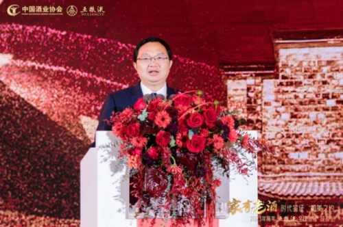 图为五粮液集团(股份)公司党委书记、董事长曾从钦致辞
