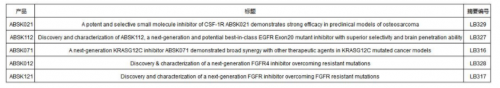 其中包括其自主研发的已获中美双突破性疗法认定 的CSF-1R抑制剂Pimicotinib(ABSK021) 和可能成为best-in-class的新一代克服耐药突变的EGFR Exon20抑制剂ABSK112 ,以及新一代克服耐药突变的FGFR4 抑制剂ABSK012和FGFR抑制剂ABSK121,新一代KRAS抑制剂ABSK071的最新临床前和转化医学研究进展。
