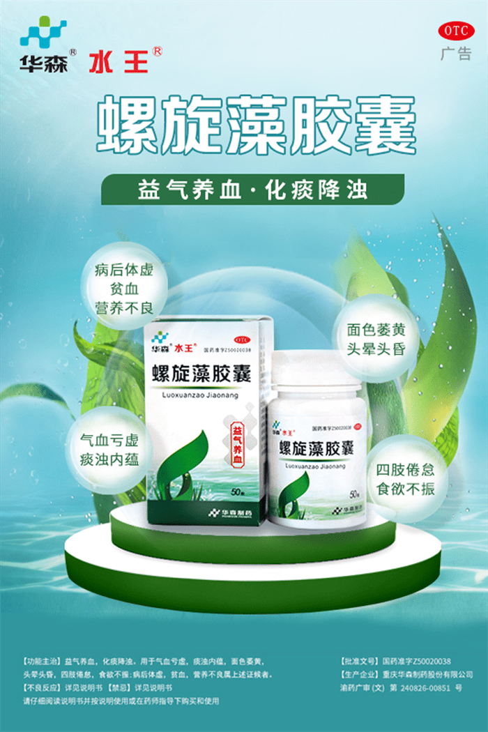 华森制药水王®螺旋藻胶囊是国药准字号螺旋藻,从原料、加工、储藏、运输到销售全过程严格按照国家食品药品监督管理总局GMP要求进行,其行业标准远高于保健食品的标准,是更高品质的螺旋藻。