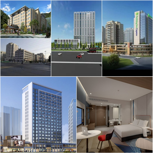 图:签约酒店项目(左上至右下):湛江滨海智选假日酒店、中山中心逸衡酒店、广州增城新塘智选假日酒店、文山光大广场智选假日酒店、南昌经开白水湖智选假日酒店、保山火车站智选假日酒店、兰州西固智选假日酒店、广州十甫voco酒店、厦门集美新城智选假日酒店