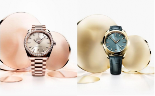2023 年,品牌推出了两款由欧米茄独有的 18K 金打造的 Aqua Terra Shades 腕表, 璀璨闪耀的金色色调再度演绎了 Aqua Terra Shades 腕表的色彩精神。腕表内部搭载欧米茄 8801 至臻天文台机芯, 通过由瑞士联邦计量研究院 (METAS) 核准的严苛 测试,其精准度、防磁性和整体性能均达到行业的更高标准。
