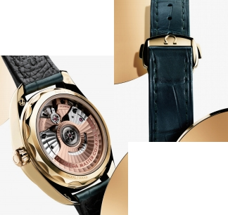 38 毫米的全金腕表采用欧米茄独家研发的 Sedna 18K 金打造而成,这一独特的红色 18K 金以柔和雅致的色调和显著的抗色变性而闻名。腕表表圈镶饰 46 颗闪耀美钻,共 1.77 克拉。砂岩色表盘经 CVD 技术打造,呈现出太阳射线的打磨效果。圆形日历窗采用 Sedna 18K 金制成, 与帆船造型的小时刻度和灰色品牌标识相映生辉。腕表内部搭载欧米茄 8801 至臻天文台机芯,搭配 Sedna 18K 金表链和蝴蝶表扣。