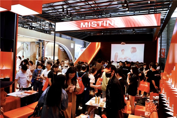 在N5主题展馆的Mistine蜜丝婷展区,记者看到,展位以字母“M”为空间创意,以活力橙作为主创色,处处充满热带植物和光的元素,展现出“遇见光、去追光、成为光”的青春态度和“泰酷辣”的品牌风格,是现场最受欢迎的展区之一。