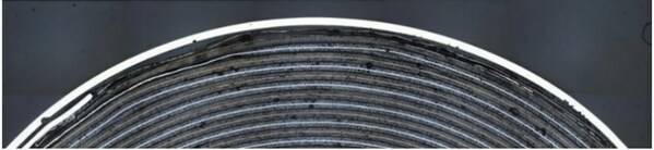 光学显微镜电极截面失效分析 来源:《纤毫毕现,追根溯源 – 探索电池高效生产 打造高品质电池的奥秘》白皮书
