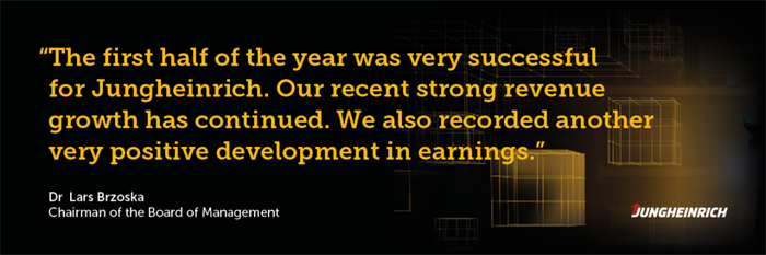 永恒力集团董事会主席Lars Brzoska博士解释道:“今年上半年对永恒力而言可谓硕果累累。我们延续了近期营业收入强劲增长的势头。增幅达到了46%,我们在盈利方面再次实现了极为喜人的增长。通过收购Storage Solutions集团,我们在美国货架系统和仓储自动化领域赢得了一个重要的增长点。这一点目前已首次体现在集团的合并财务报表内。我们继续推进实施2025+战略,并确认本年度的预测数据。永恒力已经为迎接未来做好了充分的准备。”