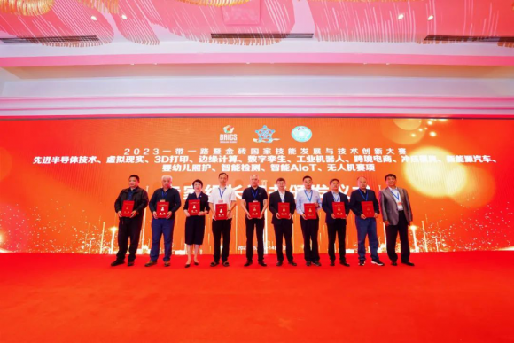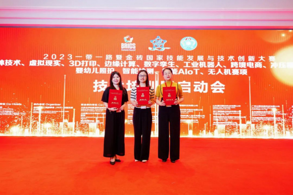 会上,金职伟业总经理潘建明、董事长助理兼品牌运营总监周娟、技术研发中心主任陈万方、副主任李偲婧受聘为2023一带一路暨金砖国家技能发展与技术创新大赛技术委员会技术委员。同时,金职伟业成功入选一带一路暨金砖国家技能发展国际联盟会员单位,并被授予荣誉证书。