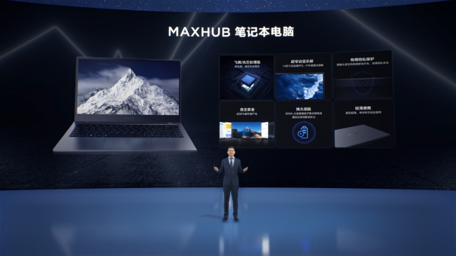 此外,MAXHUB 笔记本电脑新品也十分吸睛。MAXHUB 笔记本电脑是基于飞腾平台打造,标配16G内存+512G固态硬盘,支持麒麟和统信UOS国产操作系统;整机采用14英寸16:9的2K显示屏,搭载全高清摄像头和阵列麦克风、65Wh大容量电池,让日常移动办公更轻盈、更高效。