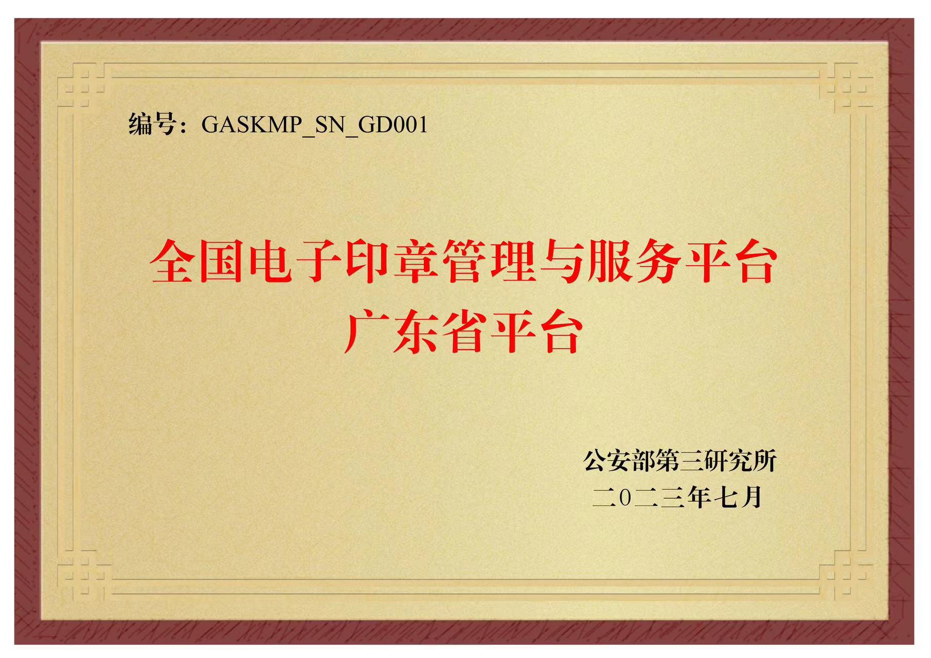 公安部第三研究所全国电子印章管理与服务平台广东省平台是由公安部第三研究所指导,面向政企及个人用户提供电子印章应用公共服务,为广东省电子印章用户提供权威备案、查询、核验等支撑服务,实现电子印章互联互通、互信互认、跨省通办的服务能力。