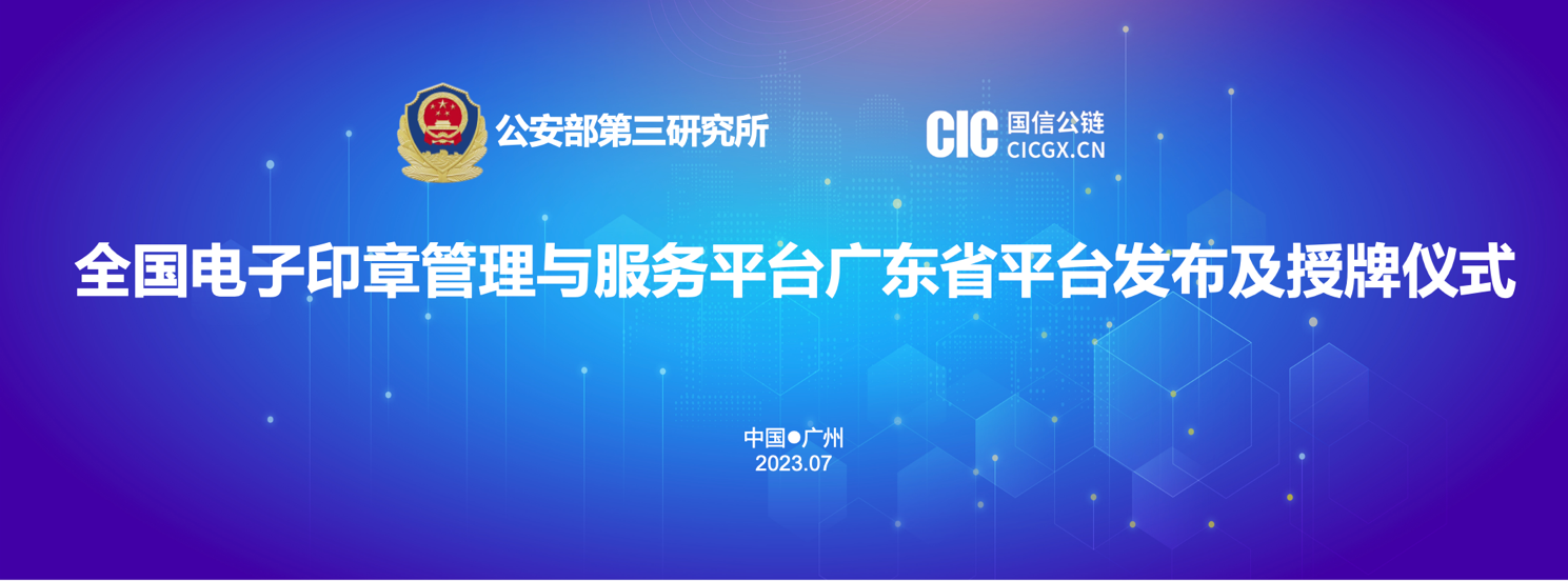 7月3日,公安部第三研究所全国电子印章管理与服务平台广东省平台正式发布成立,并于广州举行“构建可信生态 赋能数字经济”公安部第三研究所全国电子印章管理与服务平台广东省平台授牌仪式。
