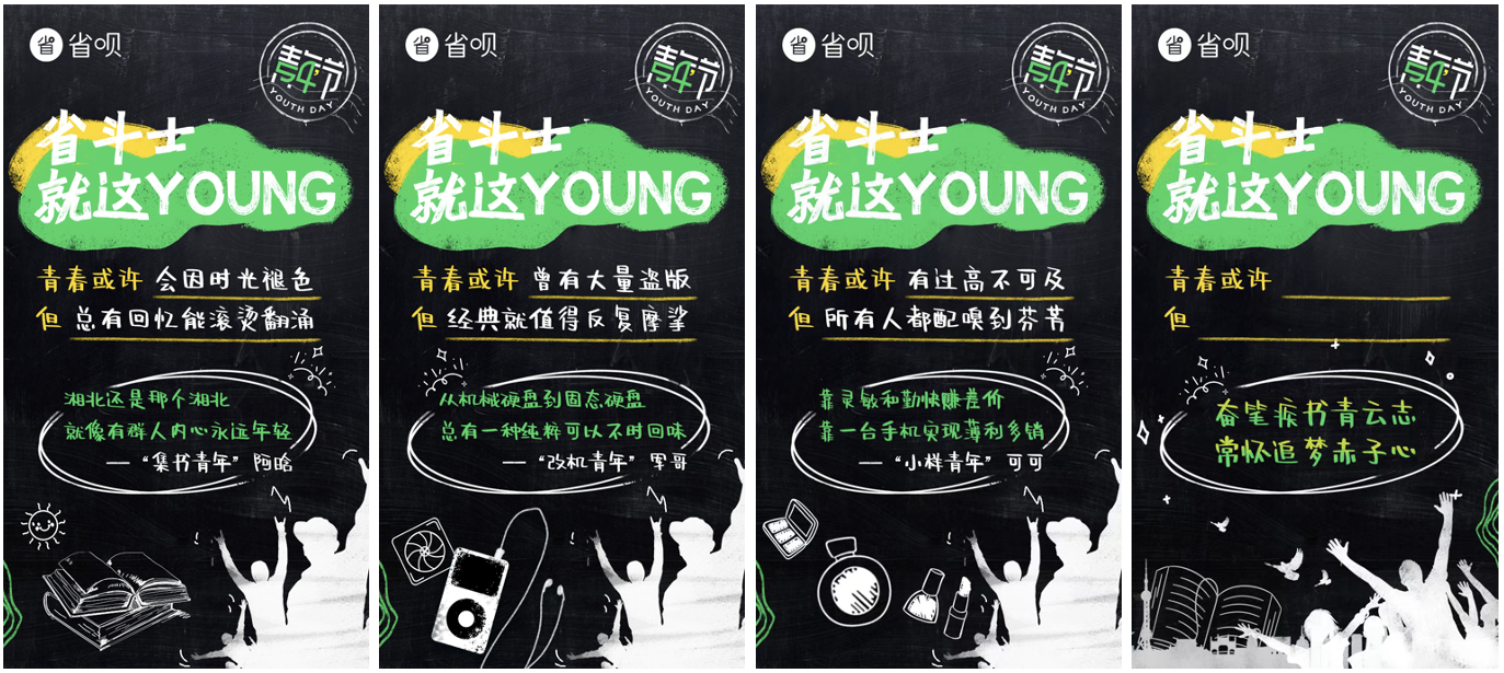 风好正是扬帆时,策马扬鞭再奋蹄。和集书青年阿晗、改机青年军哥、小样青年可可这样将爱好做成生意的人还有很多,他们也是无数年轻追梦人的代表,有着这个时代后浪群体的可贵品质。恰逢五四青年节,数字化优惠服务平台省呗也为这些年轻的“省斗士”欢呼喝彩,一组#省斗士 就这YOUNG#的海报,不仅描绘出上述青年代表的风貌,还以“青春或许_______,但_______”的句式引发网友的共鸣,激发年轻人表达内心炙热,以真诚博取喝彩与鼓励。“青春或许稍纵即逝,但造就了全新的自己”、“ 青春或许是这白开水一样淡的日子,但更多的还是相互成就和相互温暖”、……短短半天不到,话题阅读量就已突破1600万。