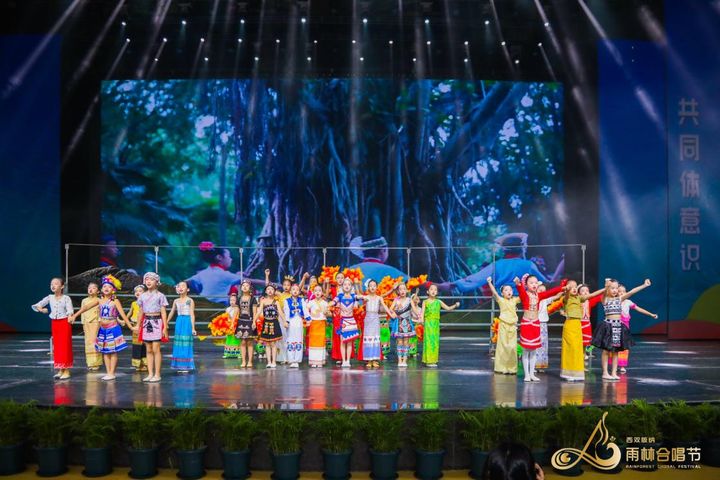 开幕式后,动听专业的合唱节赛事多彩开启,少年童声组《萱草花》《亲爱的旅人》、老年组《孔雀飞来》《让我听懂你的语言》、成年组《石榴籽籽心连心》《那地方》《崴萨啰》 ......来自各地优秀合唱团身着少数民族服饰登场,对合唱作品的精妙把控、细腻的演绎,时而婉转悠扬、时而昂扬激越、时而载歌载舞,让星光灿烂的西双版纳乘着歌声的翅膀起舞飞扬,让合唱艺术赋能民族团结进步创建,共话《石榴籽籽心连心》主题曲的时代意义。