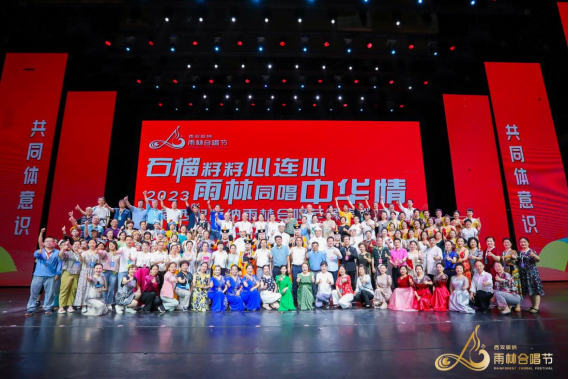 5月21日上午9:30,“石榴籽籽心连心·雨林同唱中华情”2023首届西双版纳雨林合唱节在西双版纳曼听公园剧场隆重开幕。
