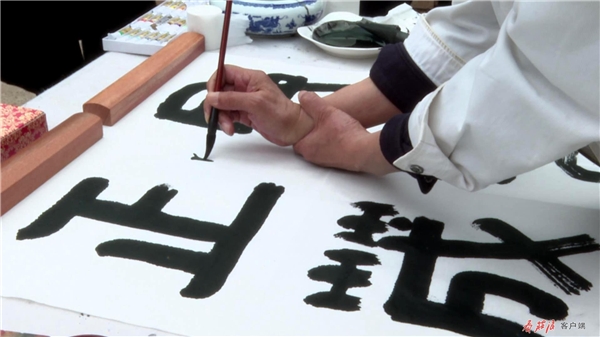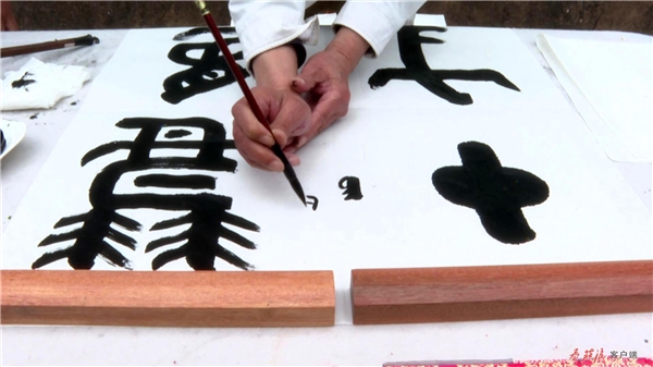 在农家小院,阎正正在聚精会神地挥毫泼墨,他在笔墨的运用上别出心裁、匠心独运,流畅的线条苍劲有力,书法作品淋漓尽致地展现于尺幅之上。谈起他创作的灵感,阎正说,“庄浪历史悠久、文化底蕴深厚、森林植被覆盖率高,俨然一幅天然山水画。庄浪县云崖寺自然风光秀丽,石窟艺术精美,有远山、有水库、有寺庙,它完全具备中国画的每一个条件。”