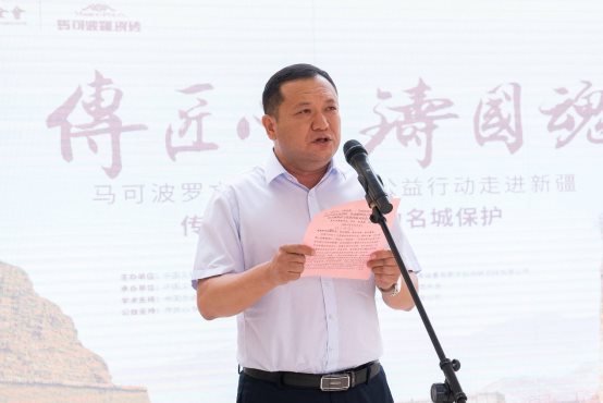 捐赠仪式现场,阿克苏地区库车市委副书记、市长麦麦提•吐拉甫对“传匠心·铸国魂”马可波罗文化遗产保护公益行动落地新疆以及马可波罗控股的公益捐赠表达了感谢。麦麦提•吐拉甫表示,此次“传匠心·铸国魂——马可波罗文化遗产保护公益行动走进新疆”活动捐赠仪式暨库车历史文化名城保护与发展经验交流会的召开,既是对新时代中国特色社会主义思想的深入贯彻和深入践行,也是库车深入实施“文化润疆”和“旅游兴疆”战略,唱响“古韵龟兹·丝路库车”历史文化品牌的有效方法和有力举措。库车将以此次交流会为契机,本着对历史、对人民、对城市负责的态度,紧扣历史文化名城保护开发这条主线,坚持在保护中发展、在发展中保护,立足新起点、面向现代化,以更大力度、更高标准推进历史文化名城保护和有机更新,让名城库车在现代化建设新征程中展现独特魅力和时代风貌。