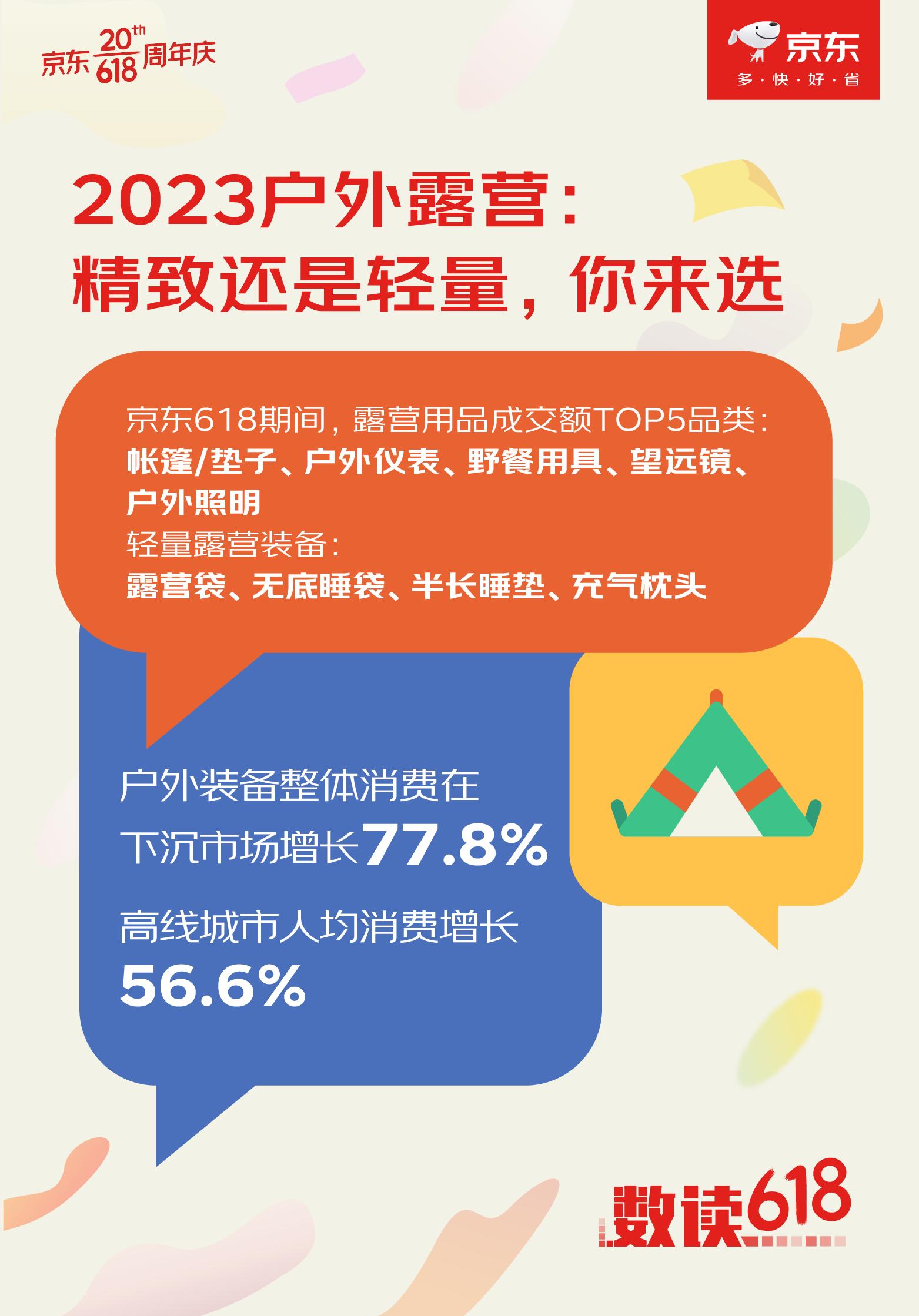 相比普通搭个帐篷看风景,小黑玩的精致露营更讲究仪式感和社交属性,同时又是户外场景,因而又衍生出“露营+N”等多种上个性化玩法,也带动了更多关联产品的火热。从京东618数据销售来看,基础设备如帐篷等依然保持增长,但需求增长更快的是专业化、细分化设备。