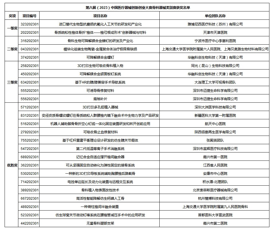 经过两天严格的评审和激烈的角逐,骨科器械类别赛最终评选出一等奖2个,二等奖3个,三等奖5个,优胜奖15个。