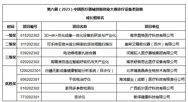 诊疗设备类别赛成长组最终评选出一等奖1个,二等奖1个,三等奖2个,优胜奖5个。