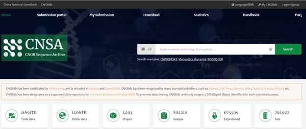 CNGBdb的存储功能由国家基因库序列归档系统(CNSA)负责。CNSA是一个支撑全球组学研究成果汇交和管理的系统,致力于多组学数据(基因组、转录组、代谢组、单细胞和空间转录组等)的开放和共享,为全球科研人员提供更加安全、稳定、可靠、便捷的数据归档服务,促进多组学数据的再利用,推动全球生命科学的发展。