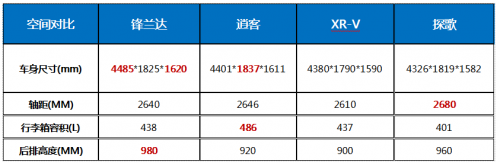 车身尺寸方面,综合对比四款车的数据,锋兰达4485*1825*1620mm的长宽高明显优于竞品,同时2640mm的轴距也处于同级领先,车身尺寸确实为锋兰达带来了更好的乘坐体验。进入车内,能够发现二排车顶还细心的加入了挑高设计,让锋兰达的二排车内高度达到了980mm,让整体舒适性得到了较大提升。