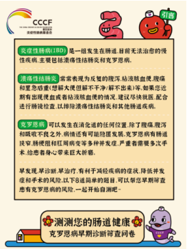 CCCF公益集市是5月19日当天的特别策划活动,7家医院的医护人员及当地志愿者们为前来观展的人们细心地讲解肠道相关知识,科普IBD疾病知识,并免费提供IBD风险早筛问卷自测。该问卷来源于ECCO(欧洲克罗恩病和结肠炎组织)在CD诊断方面提出的最新技术和理念。问卷调查结果可以为测试人员提供自身肠道健康参考,帮助更多人了解肠道疾病,强化自我健康管理意识。