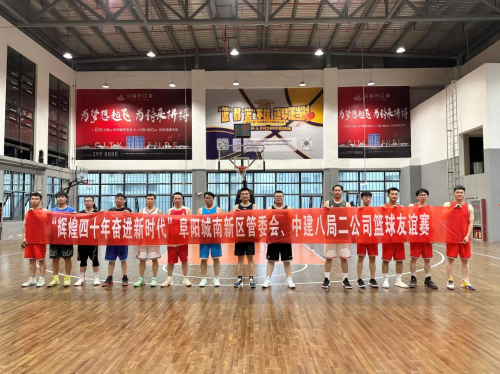 为增进阜阳城南新区政企友好合作交流,构建和谐关系,近日,中建八局二公司华东公司与阜阳市城南新区建设管理委员会共同开展了一场篮球友谊赛活动。阜阳市城南新区建设指挥部办公室征地拆迁管理处处长、阜阳市城南新区建设投资有限公司董事长吴超,华东公司党总支书记、总经理丁晓冬,总经济师、工会主席郭坤出席活动。