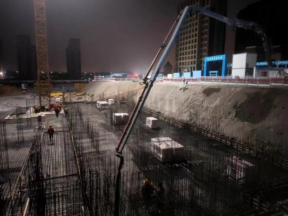 项目自2023年3月15日首块筏板浇筑,65天内完成全部地下主体结构施工,最快楼栋已施工至5层,刷新同类安置房项目施工速度。