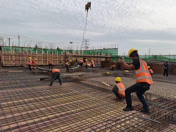 项目始终坚持以质量为核心,现场实行样板引路指导施工作业,为统一施工技术标准、规范施工工艺质量提供重要保障。注重加强施工过程质量控制,实行联合举牌验收“三检”制度,从钢筋进场定型化钢筋原材堆放架,钢筋直螺纹过程检查标识,丝头平头切割、丝头打磨,到混凝土浇筑前运用钢筋防踩踏定型化人行通道,剪力墙根部防漏浆措施,确保每道工序高质量推进、高标准完成。