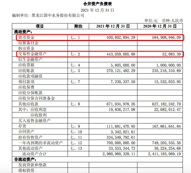 资金方面,截至2021年年末,国中水务流动资产合计29.81亿元,其中货币资金4.01亿元,主要为银行存款;交易性金融资产为4.43亿元,主要为银行理财产品。