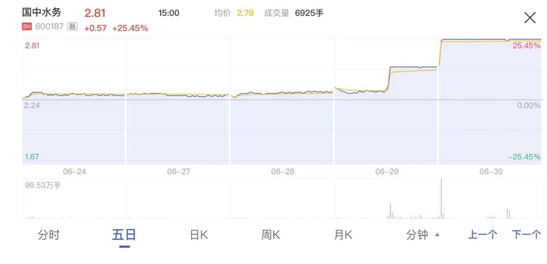 6月27日,全国企业破产重整案件信息网最新发布“汇源果汁”所属公司北京汇源食品饮料有限公司(简称“汇源饮料”)重整计划裁定获批的消息。6月28日,中国证券报等媒体陆续报道了相关消息。6月29日午后开盘,国中水务股价迅速拉升至涨停并维持至收盘,6月30日公司股价继续涨停。6月30日盘后,国中水务发布股价异动公告确认,5月17日公告中的“标的资产”为汇源饮料。