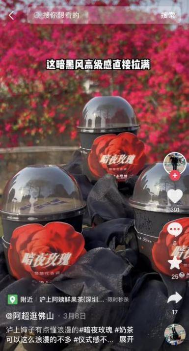 沪上阿姨联合抖音生活服务「春光好食节」营销节点,线上围绕热点话题#奶茶可以这么浪漫的不多,完成了一次“现象级”的新品营销活动。配合春日营销氛围,沪上阿姨重点铺设以优质浪漫为主的种草视频,贴合新品气质的同时,也能为消费者营造满满的节日氛围。为了配合新品内容上线节奏上,将更多资源集中在新品上线5天,联动超过20位高粉达人集中铺设了超过千条种草视频,力求在短时间内迅速引爆新品,达成新品即爆品。新品上市3天售卖超63万杯,达人视频投稿数3万余条,视频总播放量超2亿,抖音站内搜索环比增长超过190%。