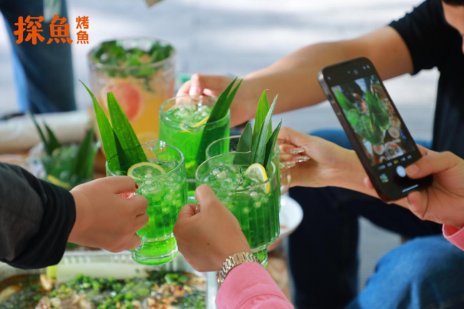本次探鱼露营品鉴会,探鱼准备了四月推出的新品——鲜青椒葱葱烤鱼。新鲜的红葱搭配整根新鲜大葱,让香葱+藤椒味型的鲜青椒葱葱烤鱼爽麻加葱香双重过瘾;搭配系列新品现场体验十分丰富:活力满满的饮品斑斓的绿,捣捣捣释放压力的小吃牛油果擂椒皮蛋,和口感脆爽治愈的辅菜鲜箭笋。品鉴会更设置了可以无限续加的自助畅饮区,大好春光环绕之下,到场嘉宾沉浸式体验到美食品鉴之乐,新产品获得大家一致喜爱,纷纷拍照打卡,解锁探鱼露营美食之旅。