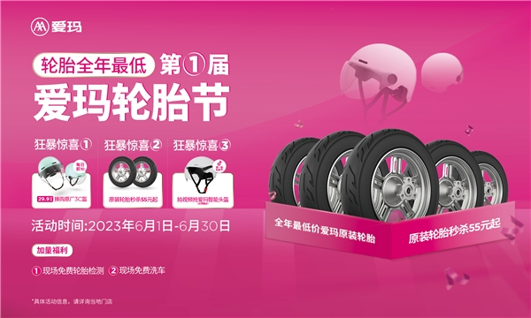 此次“爱玛轮胎节”是电动车行业首个轮胎节,同时更是以轮胎为主题,将电动车的售后服务提升到更高的水准,为用户带来更好的骑行安全、骑行体验和服务体验。低价换购轮胎、头盔大换购等全品类福利的持续放送,在6月的“爱玛轮胎节”活动期间掀起更多电动车用户火热参与的人气高潮!