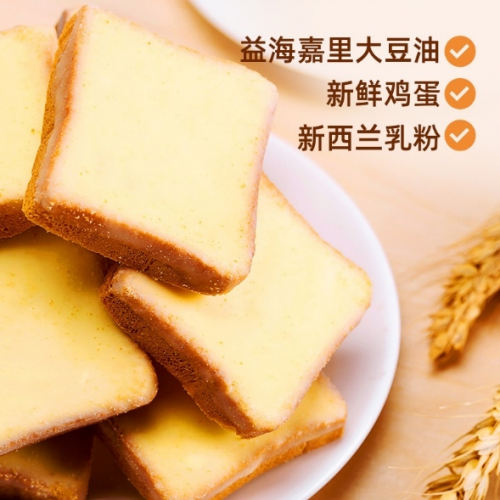 用料上,梅尼耶干蛋糕全程采用现代先进工艺用心烘焙,优选进口新西兰乳粉和益海嘉里大豆油、精选优质小麦粉和白砂糖,新鲜蛋液制作,不加一滴水,不添加防腐剂、色素,0反式脂肪酸,老人小孩也可以吃的健康,吃得放心!