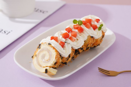 一边是使用了优质糯米粉制成的软糯麻薯,一边是新鲜蛋液、精选小麦粉,多道工序低温慢烘焙而成的松软戚风蛋糕,二者在口腔碰撞产生的口感让人眼前一亮、欲罢不能!小卷的形式又让它们分布均匀,无论从哪个方向下口都是层层递进,细腻包裹着Q弹,感受独特口感!