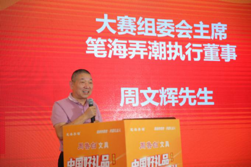 在热烈的掌声中,大赛组委会主席、笔海弄潮执行董事周文辉先生首先为本次大赛致辞,表示通过这个大型评选活动,一方面帮助草根礼品企业以低成本、高效率扩大知名度和美誉度,推广中国好礼品;另一方面,希望通过选手和嘉宾之间的互动对话,揭示礼品行业品牌打造、产品设计开发、供应链建设、数字化营销等方面的超级密码。
