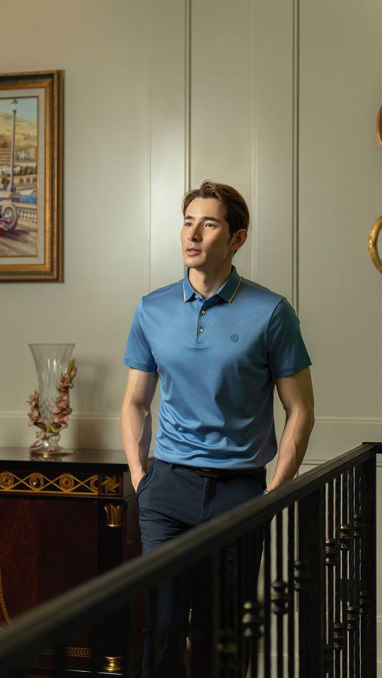 在款式上就是经典简单的Polo翻领,不会“过季过时”的设计。衣身元素除了胸口绣花,没有晃眼的大logo,而是低调地将品牌英文采用暗纹工艺进行呈现,无形中透露着男士云淡风轻的贵气与奢华气质,看起来就很沉稳雅致,富有内涵。